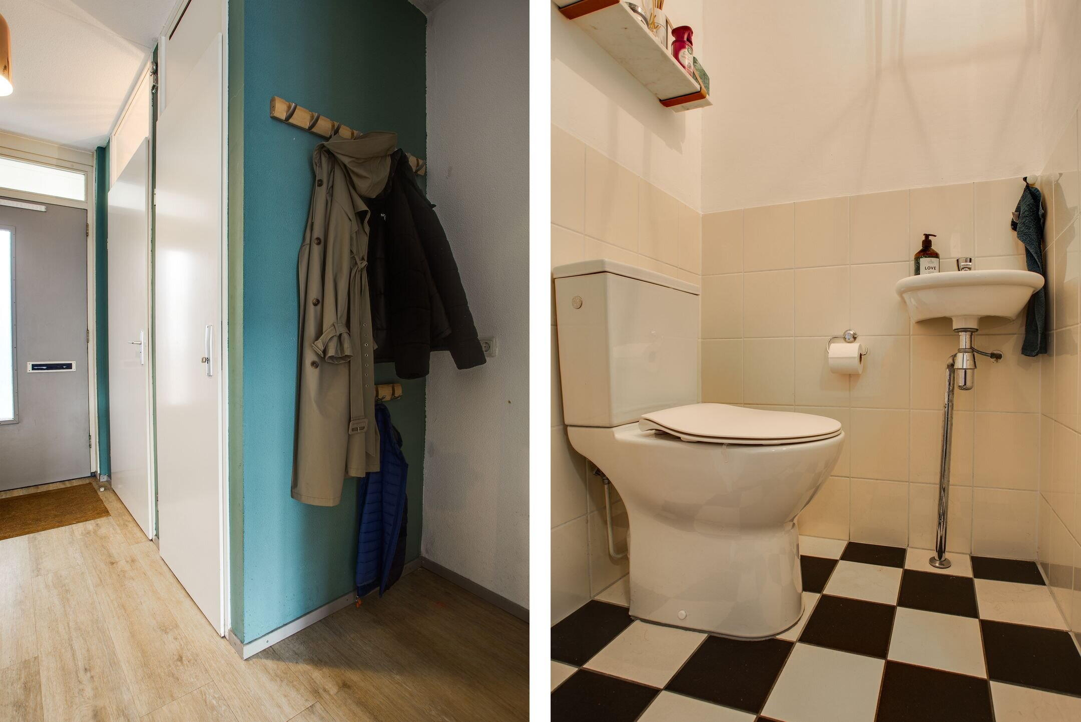 Via de overdekte entree kom je binnen in de hal met toilet en fonteintje.